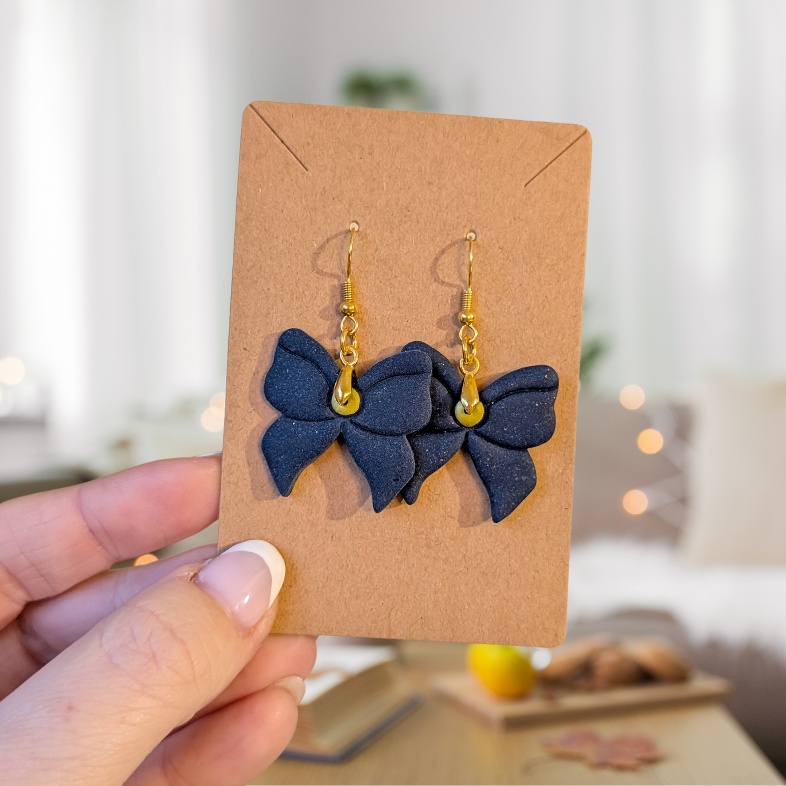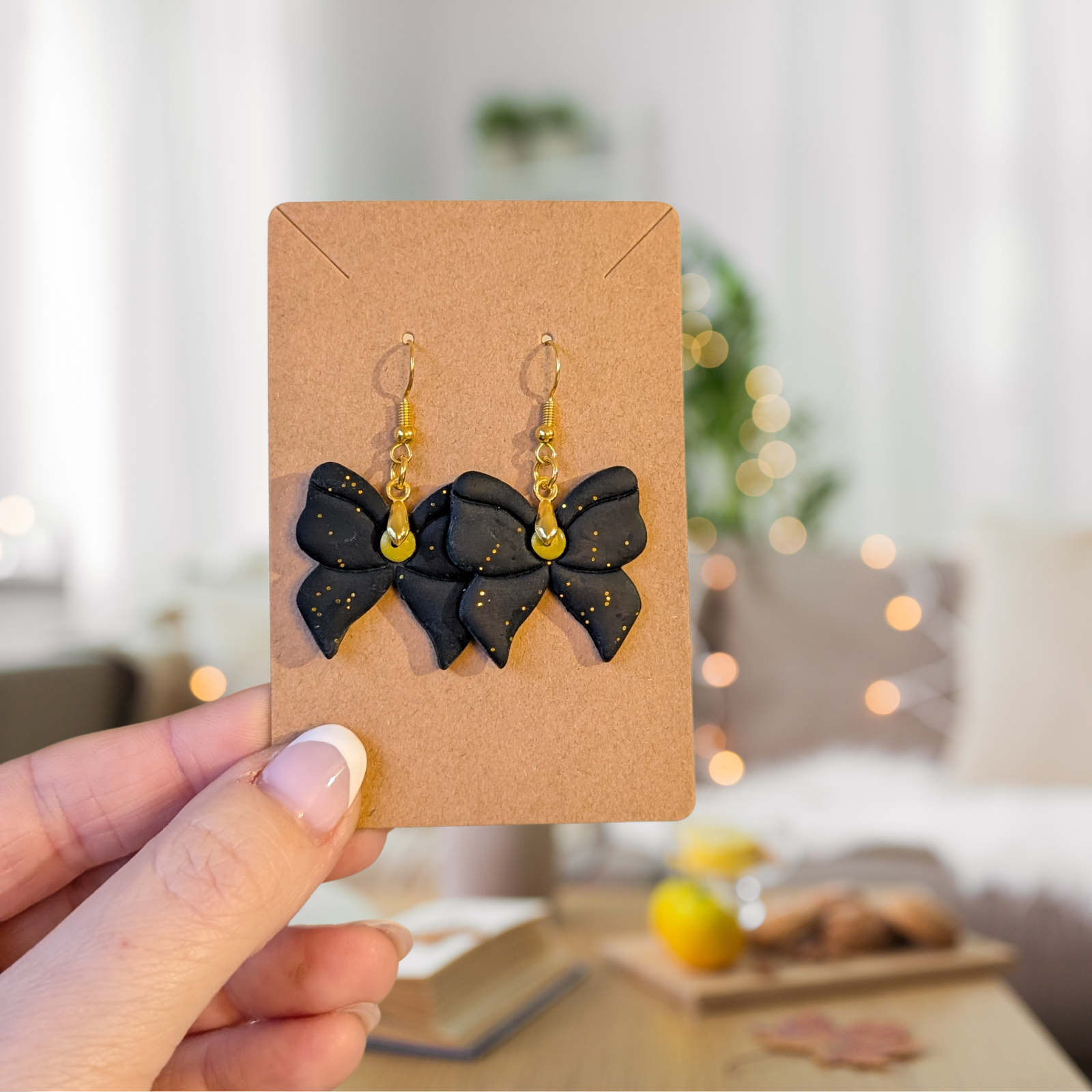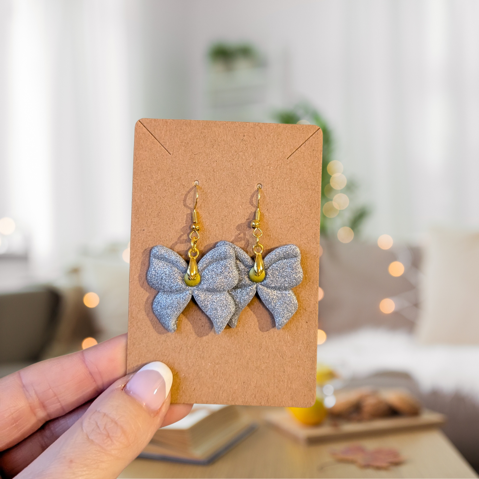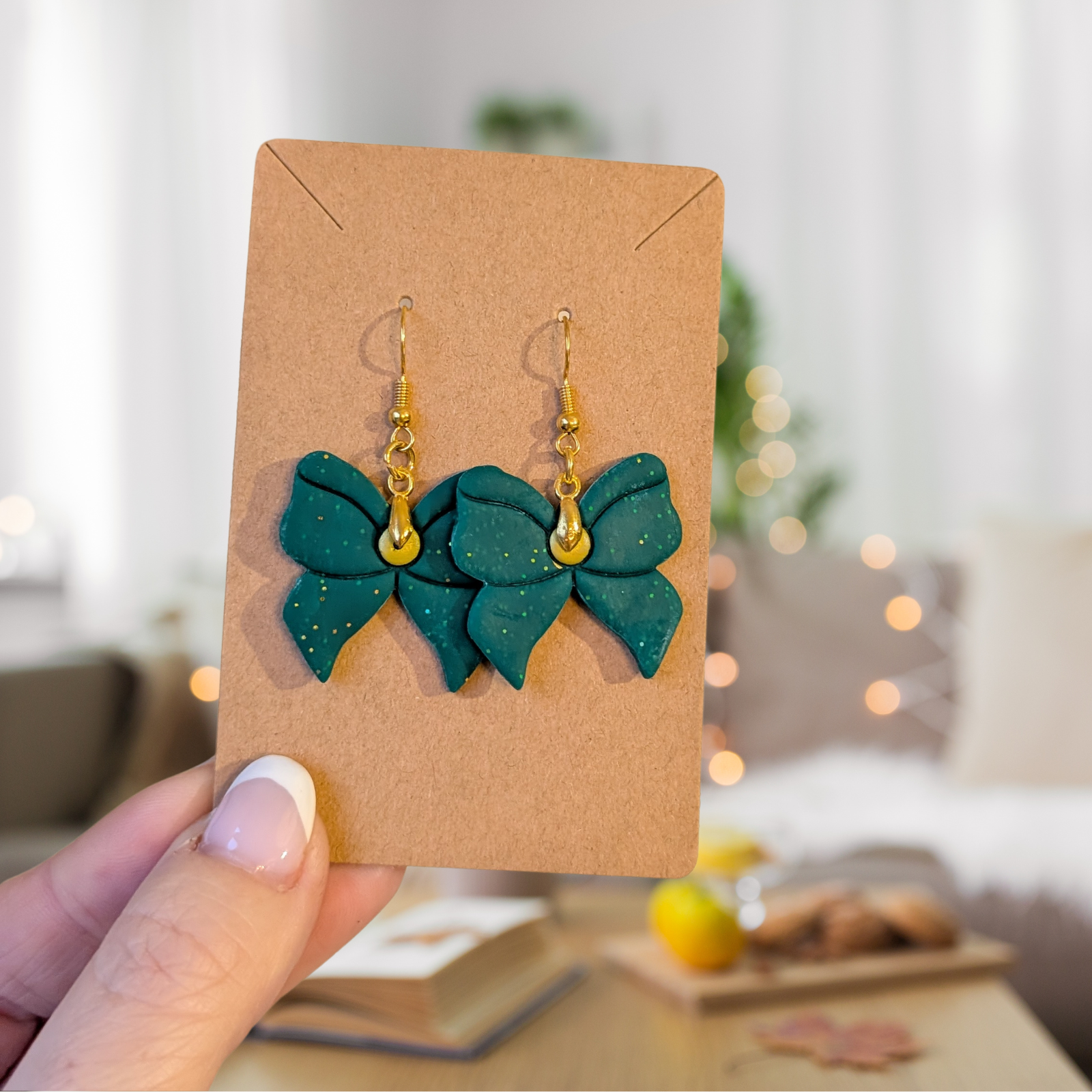 🎀 Design festif & irrésistible : un joli nœud de Noël pour une touche chic et joyeuse. 💫 Effet paillettes garanti : elles illuminent le visage et donnent du pep’s à toute votre tenue. 👐 Faites à la main : chaque paire est unique, modelée avec soin en pâte polymère. 🌟 Ultra légères & confortables : parfaites pour être portées toute la soirée sans gêne. 🎁 Idée cadeau parfaite : un petit bijou original qui fait plaisir à coup sûr. 🔒 Attaches inoxydables : pas d’allergies, pas de ternissement.