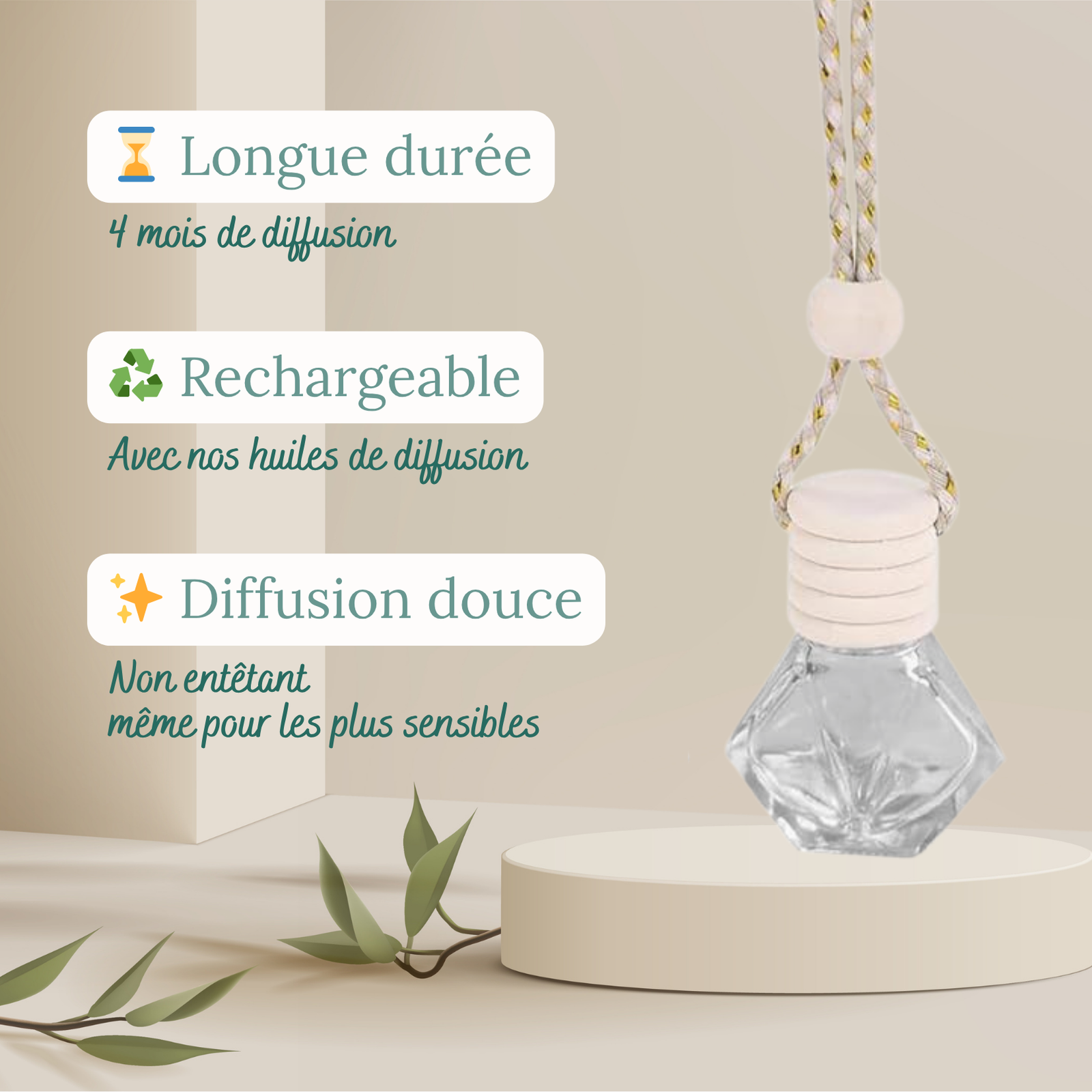 Son format pratique et rechargeable diffuse progressivement le parfum pour créer une atmosphère agréable et apaisante à chaque trajet. 💛