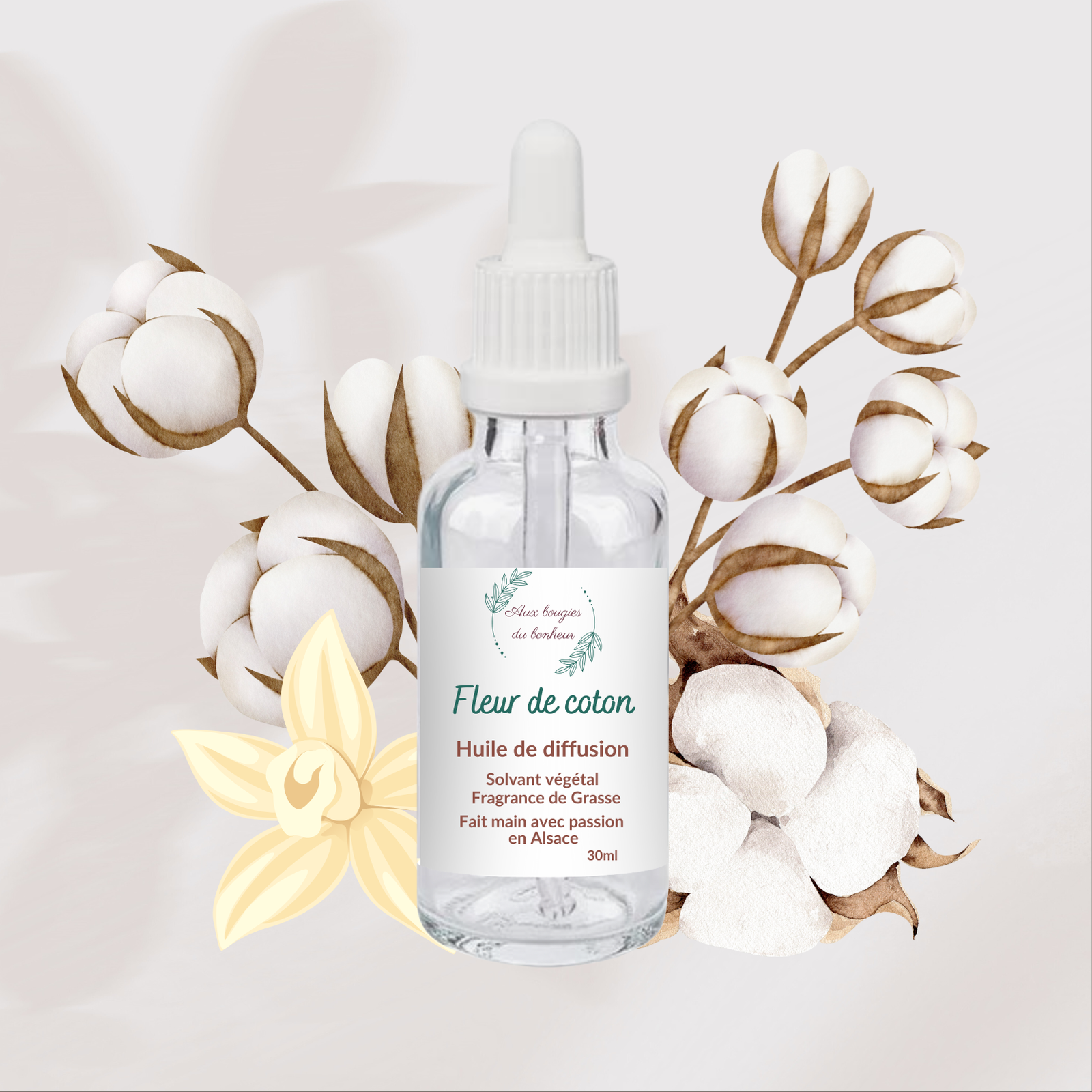 L’huile de diffusion Fleur de Coton emplit votre intérieur d’une fragrance tendre et poudrée, idéale pour créer une ambiance cocooning et apaisante.