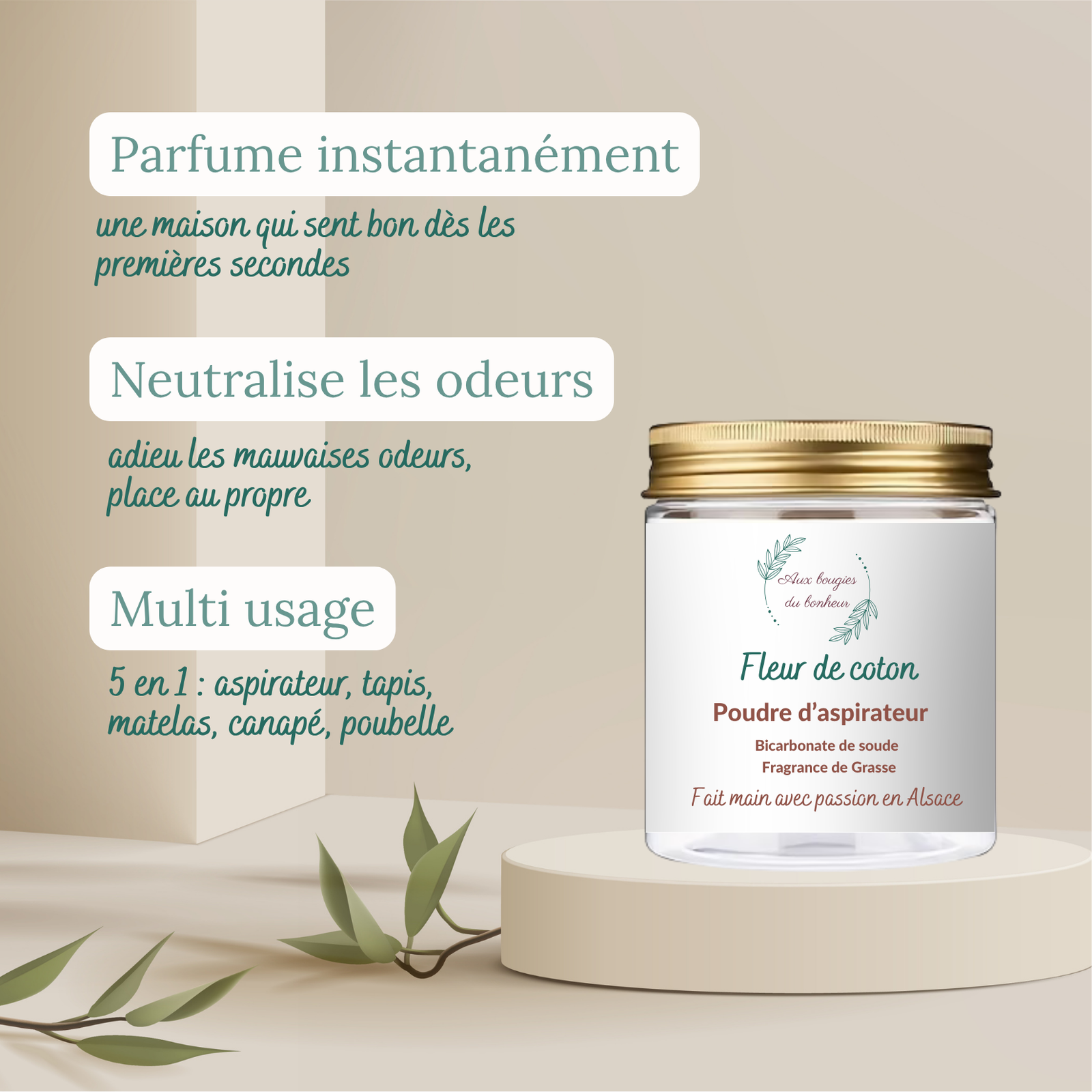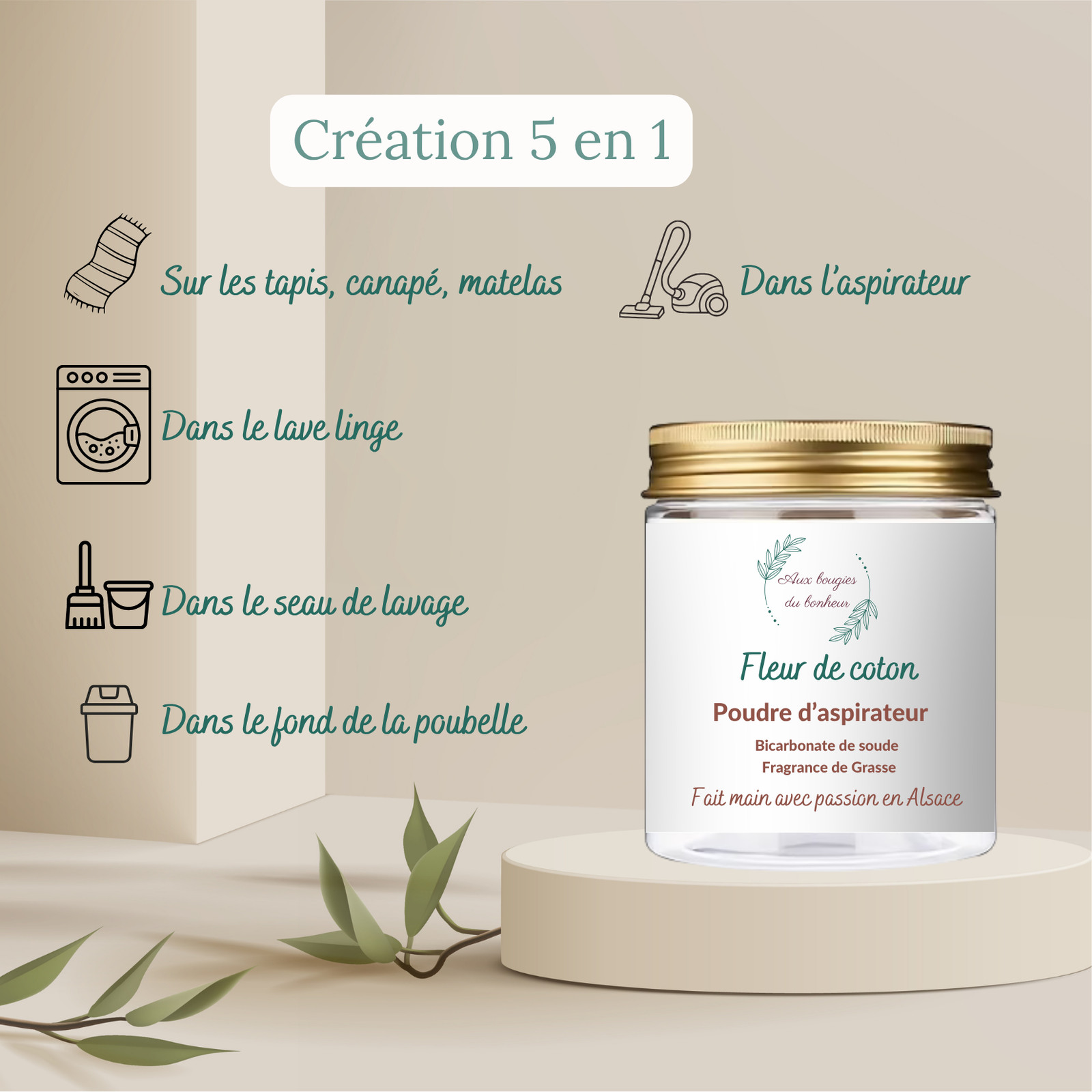 Avec cette Poudre d’aspirateur Fleur de Coton, 5 utilisations possibles :